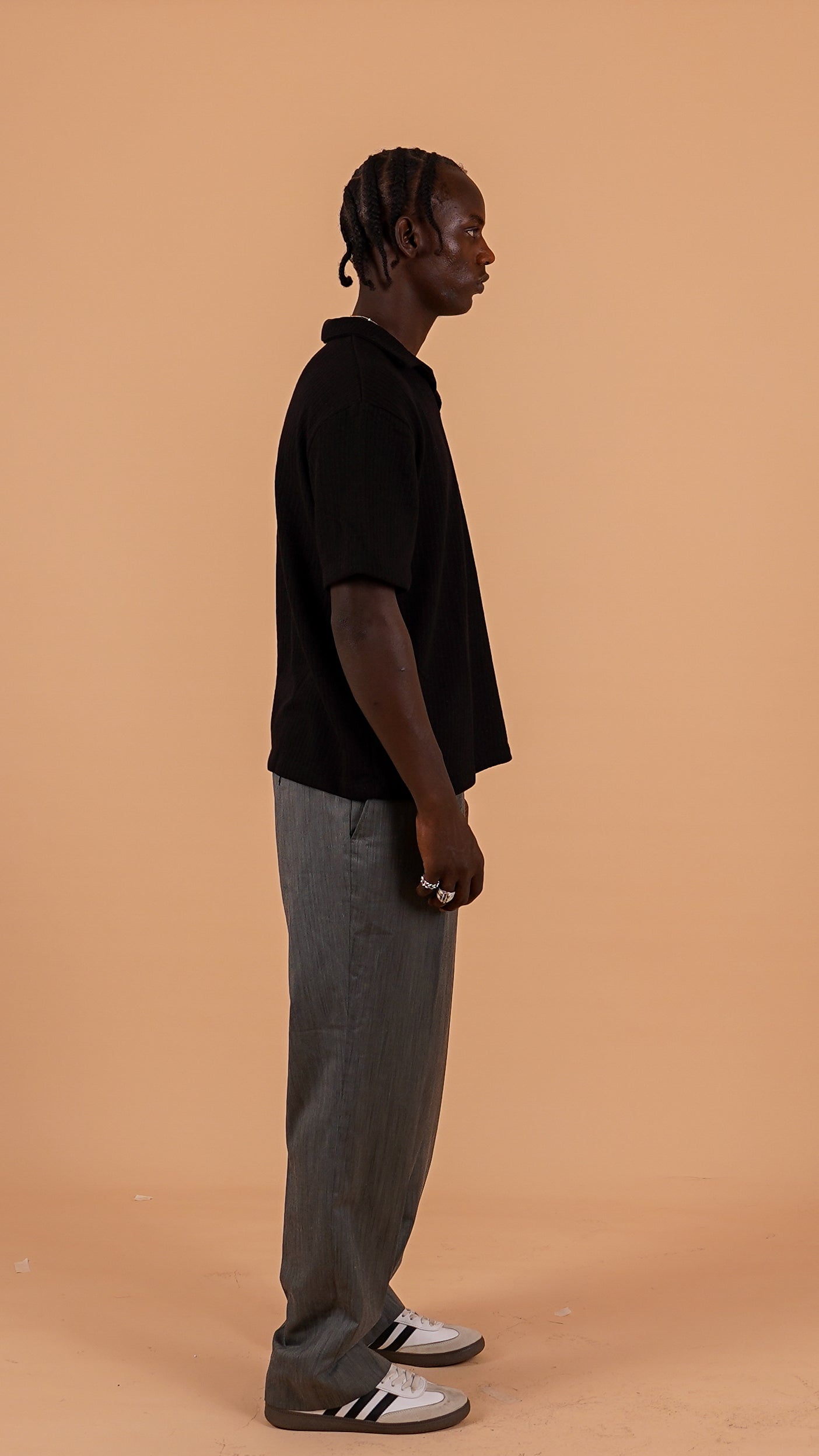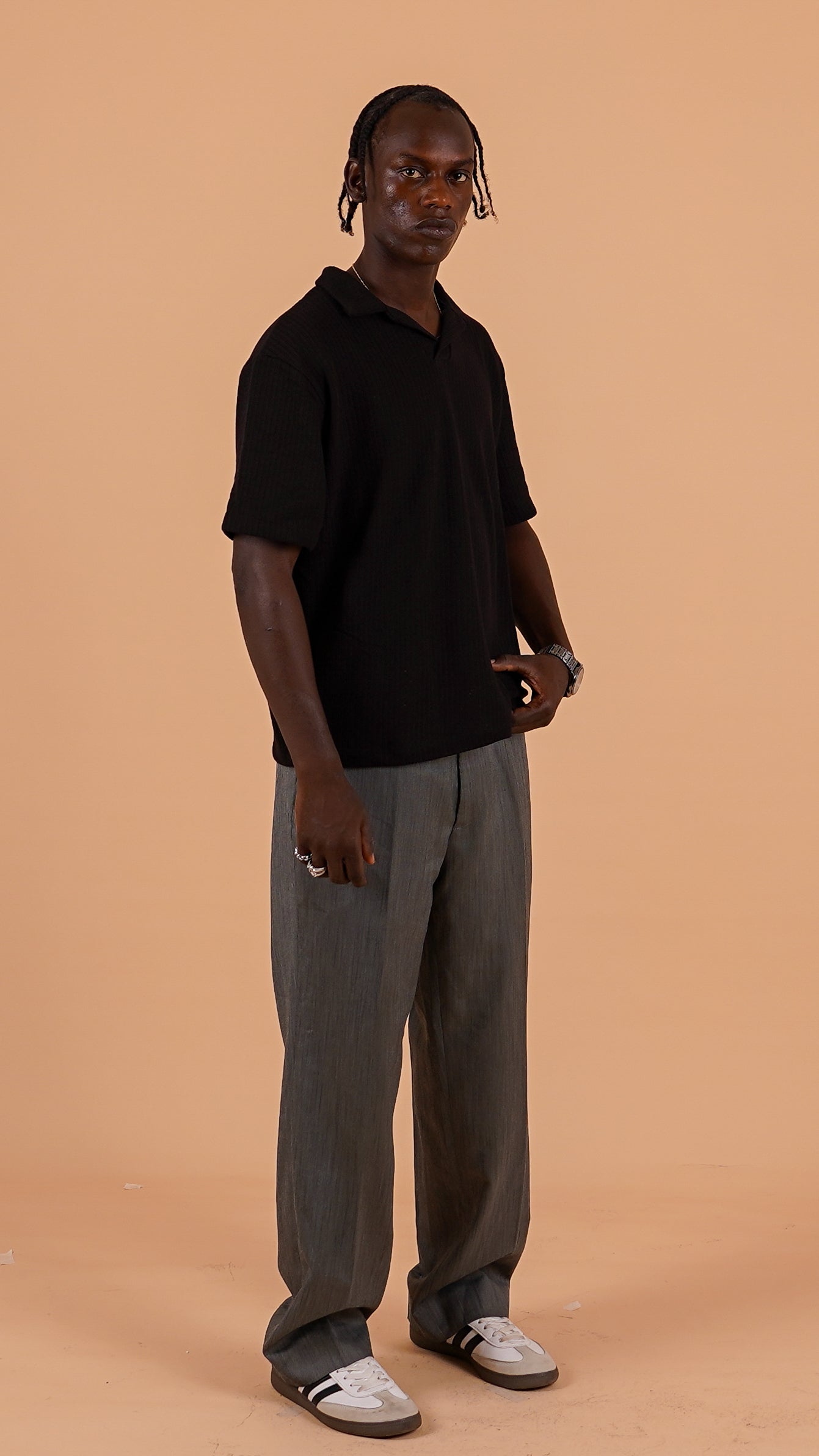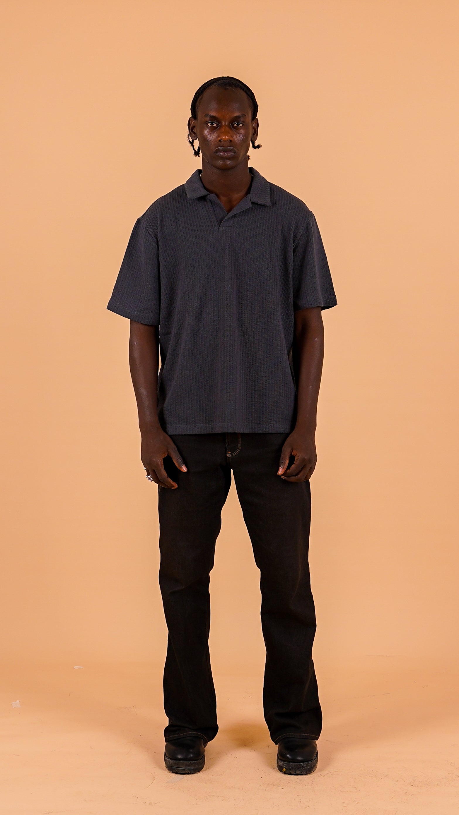 • A modern twist on a classic. This relaxed-fit polo is crafted from soft, breathable knit with subtle ribbing. Designed with an open collar and dropped shoulders, it’s perfect for smart-casual or laid-back looks.