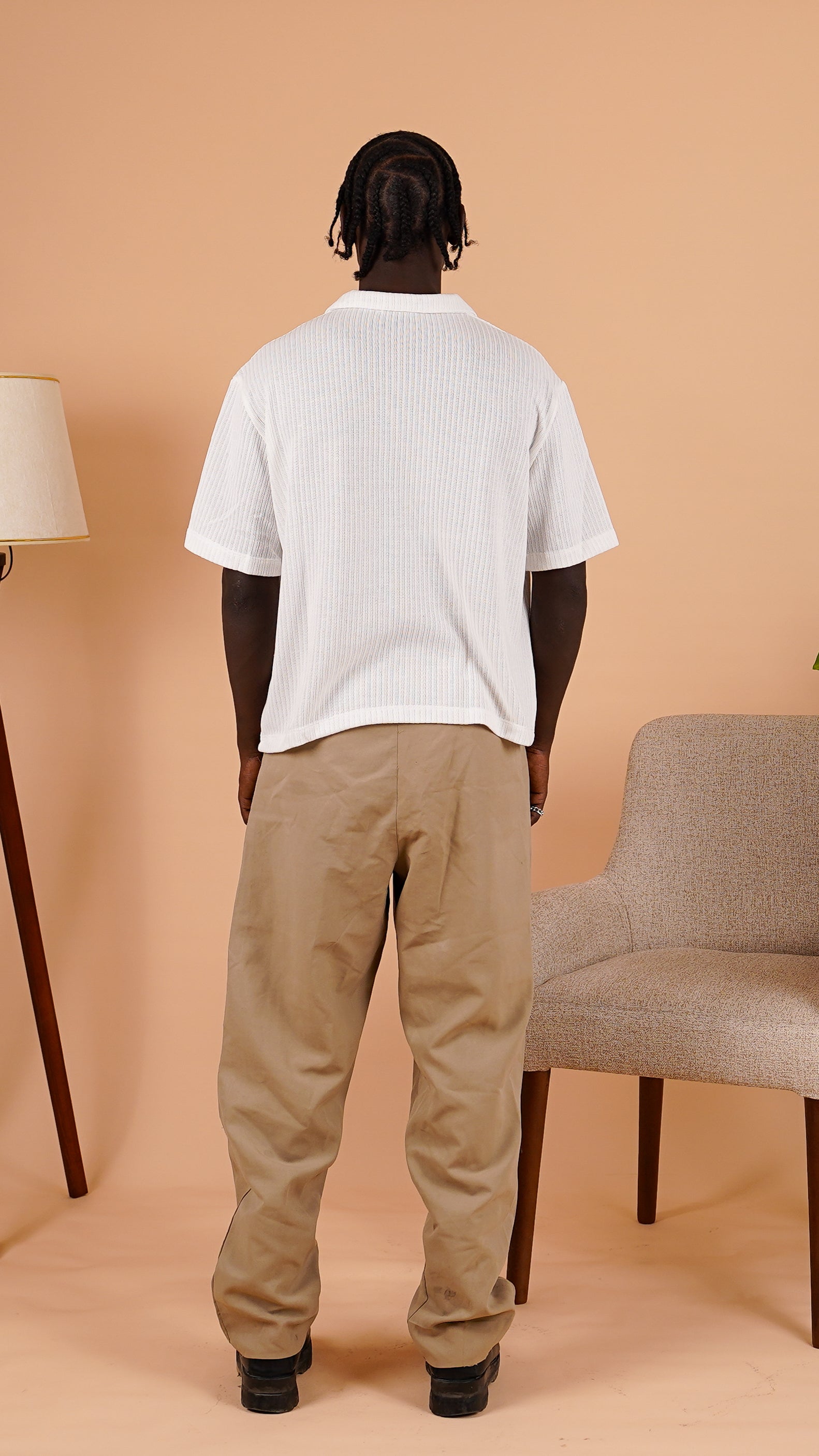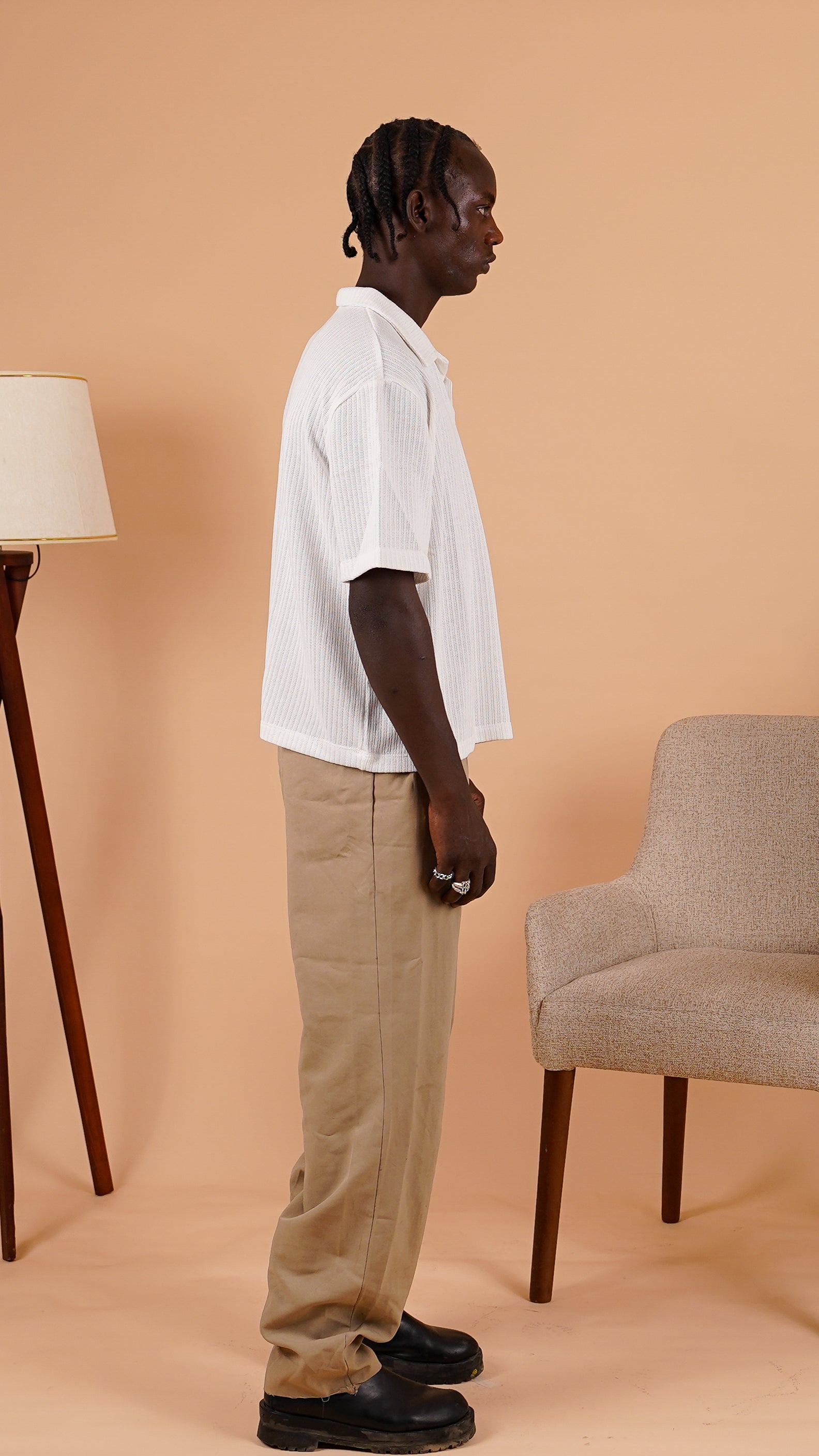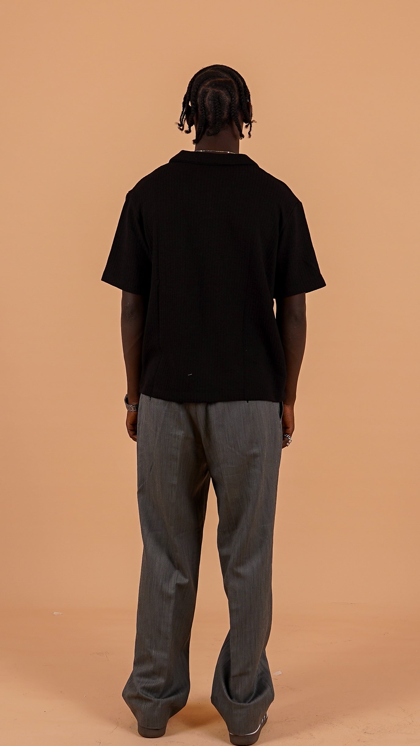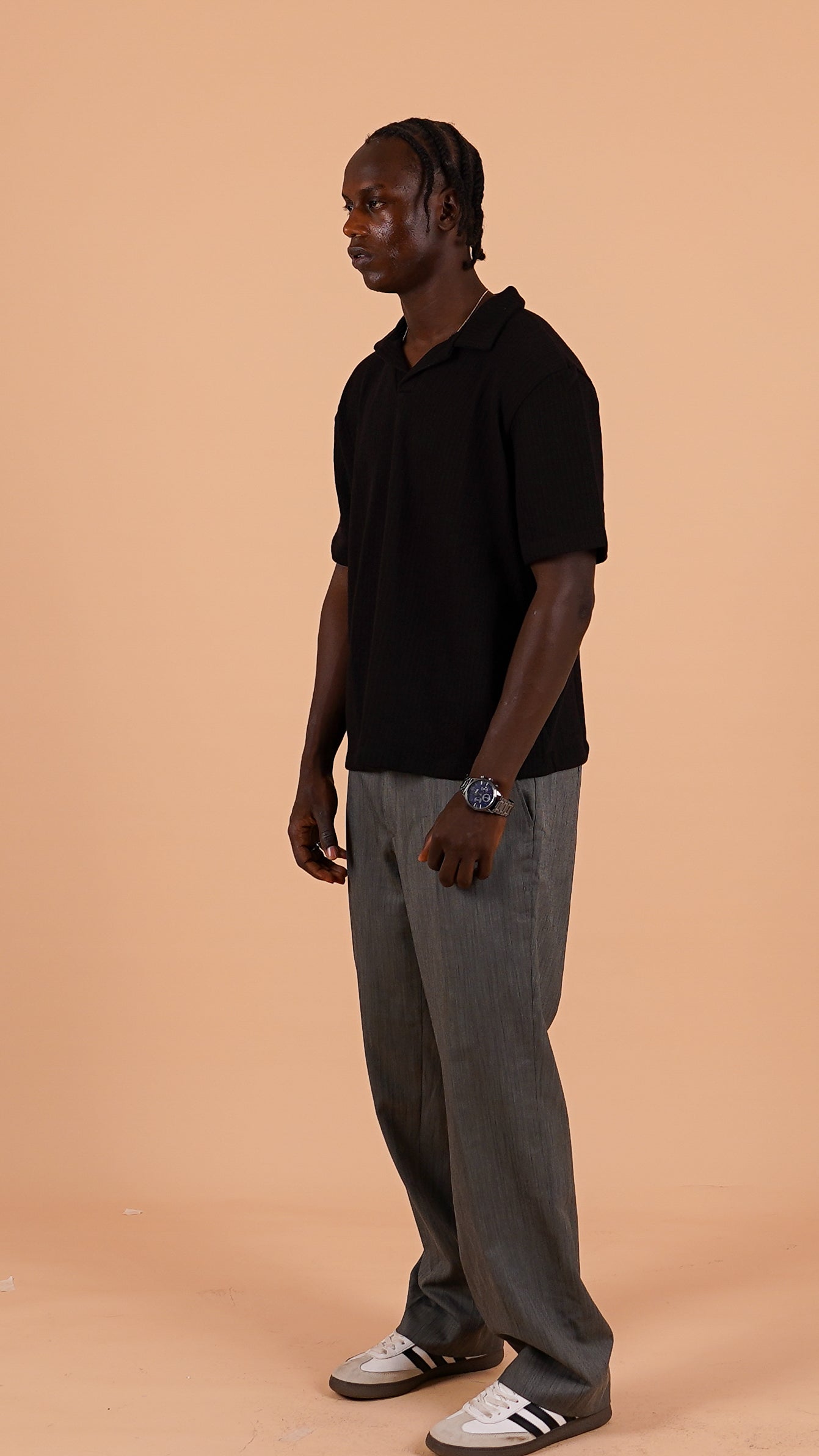 • A modern twist on a classic. This relaxed-fit polo is crafted from soft, breathable knit with subtle ribbing. Designed with an open collar and dropped shoulders, it’s perfect for smart-casual or laid-back looks.