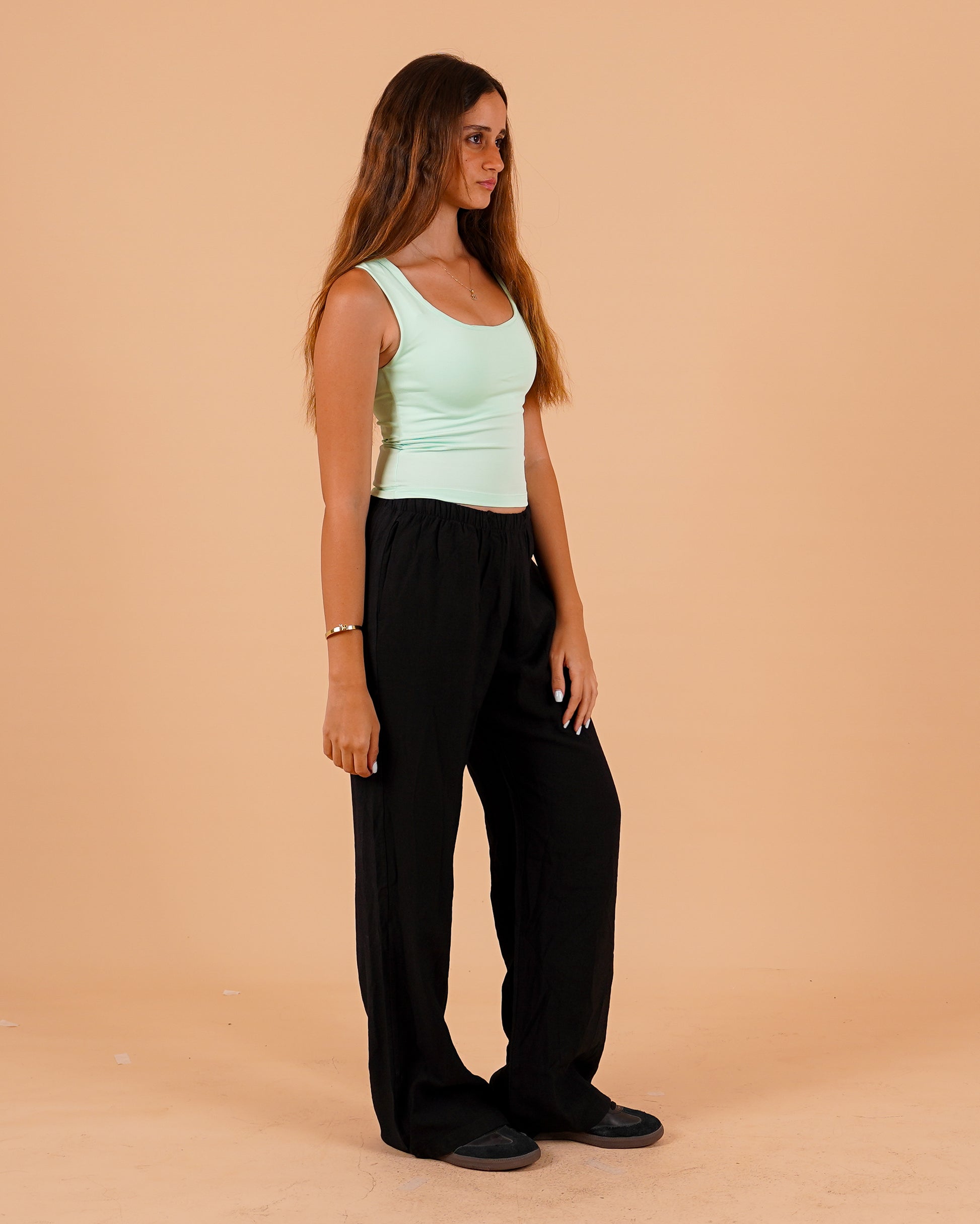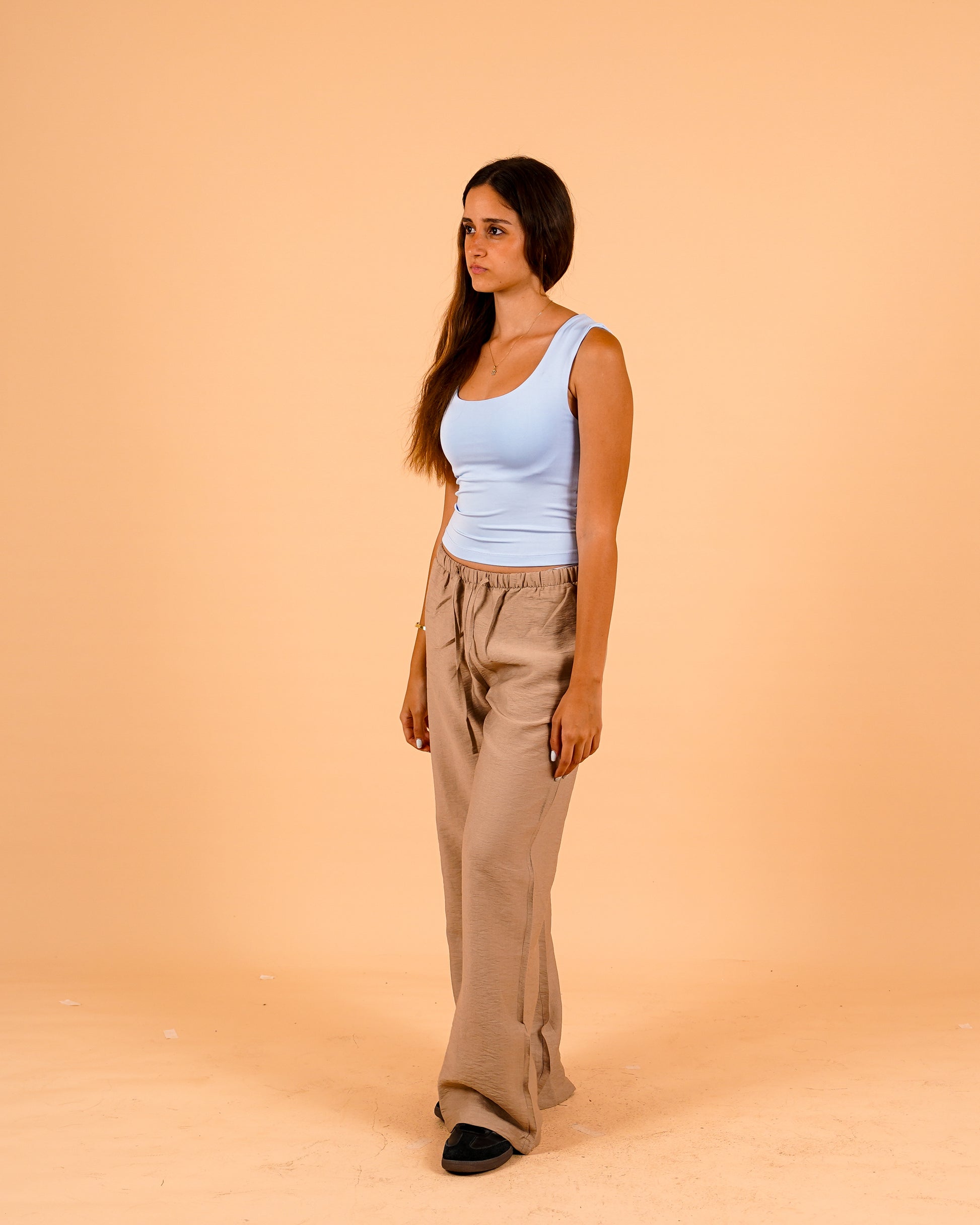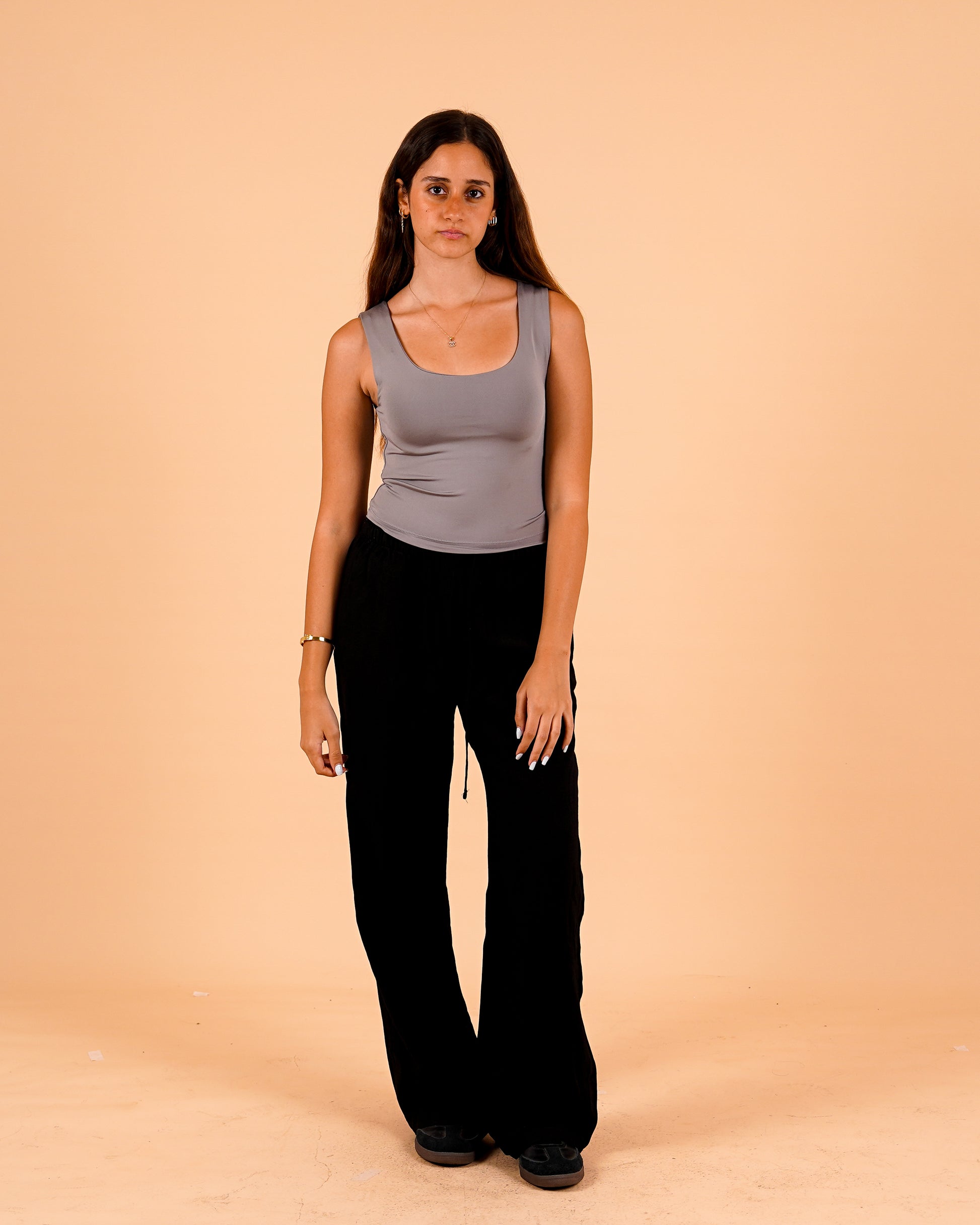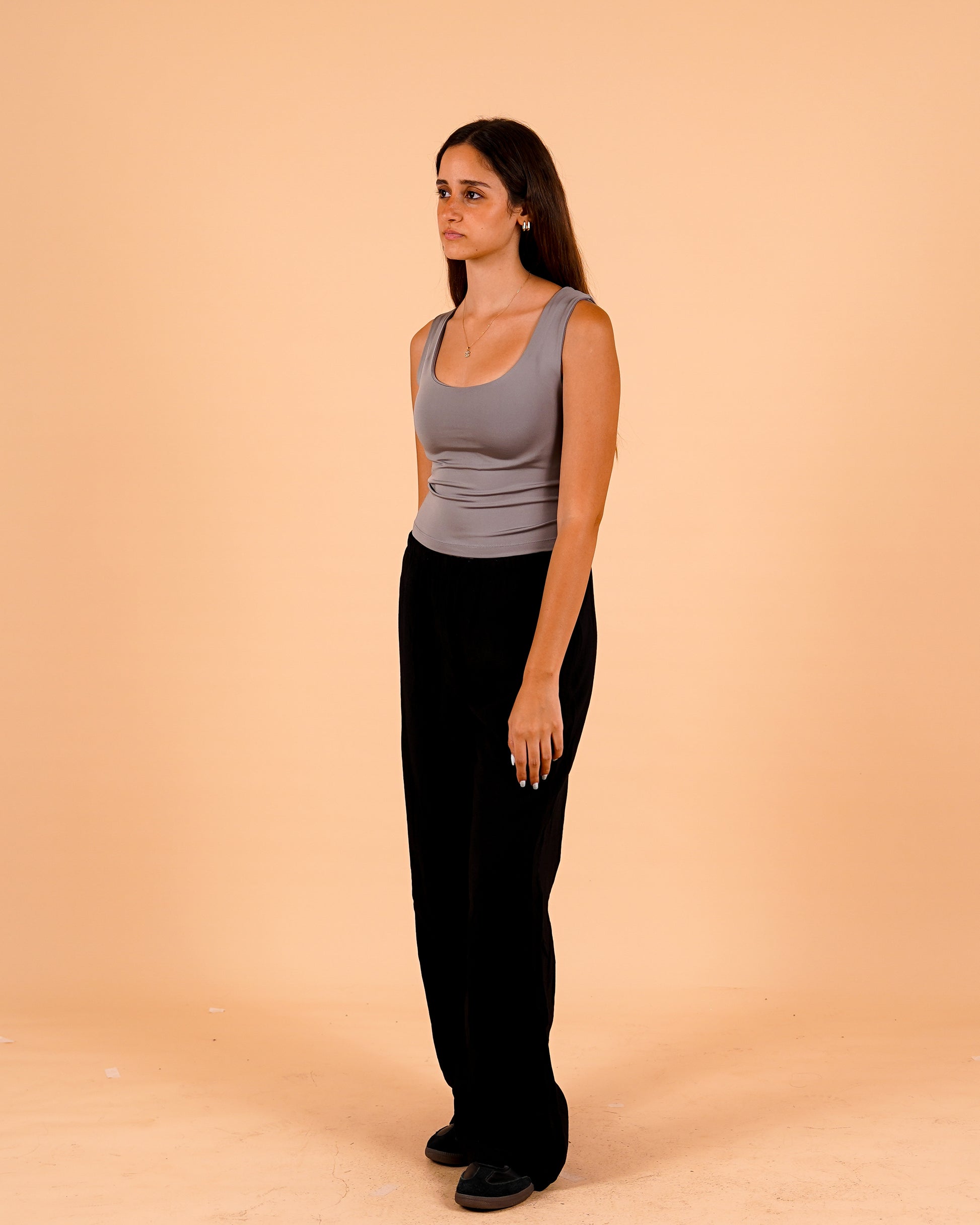 A fitted scoop-neck tank designed for comfort and versatility. Crafted from a smooth, stretchy fabric that hugs the body, it’s perfect for layering or wearing solo. The minimalist cut and clean lines make it an everyday essential for effortless styling.